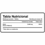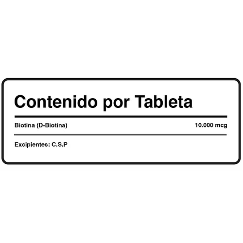 Contenido por cápsula: 10,000 mcg de biotina (D-biotina).