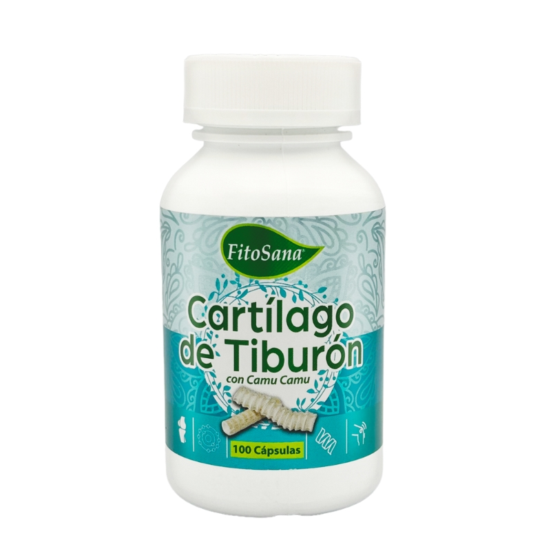 Cartílago de Tiburón con Camu Camu 100 cápsulas de Fitosana es un suplemento natural formulado para apoyar la salud ósea y articular. Combina cartílago de tiburón, rico en proteínas, calcio y sulfato de condroitina, con camu camu, una fuente excepcional de vitamina C y antioxidantes. Esta sinergia de ingredientes está diseñada para fortalecer huesos y articulaciones, y contribuir al bienestar general del organismo.