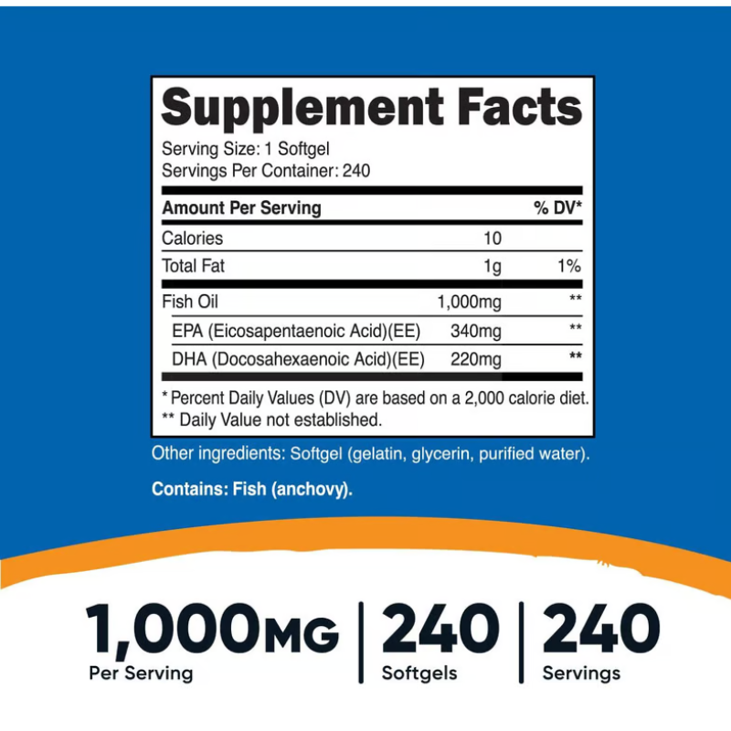 FISH OIL 1,000MG – 240 CAPS – NUTRICOST